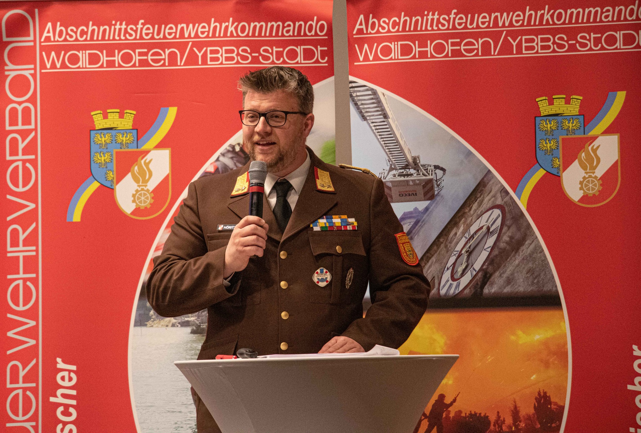 Abschnittsfeuerwehrkommandant Michael Höritzauer freute sich, folgende Ehrengäste begrüßen zu dürfen: Bürgermeister Werner Krammer, die Vizebürgermeister Mario Wührer und Armin Bahr, den für das Feuerwehrwesen zuständigen Gemeinderat Christian Pechhacker, OBR Rudolf Katzengruber vom Bezirksfeuerwehrkommando, die Abschnittsfeuerwehrkommandanten der Nachbarabschnitte, die Ehrenfunktionäre des Abschnittes, sowie alle Mitglieder der anwesenden Feuerwehren.