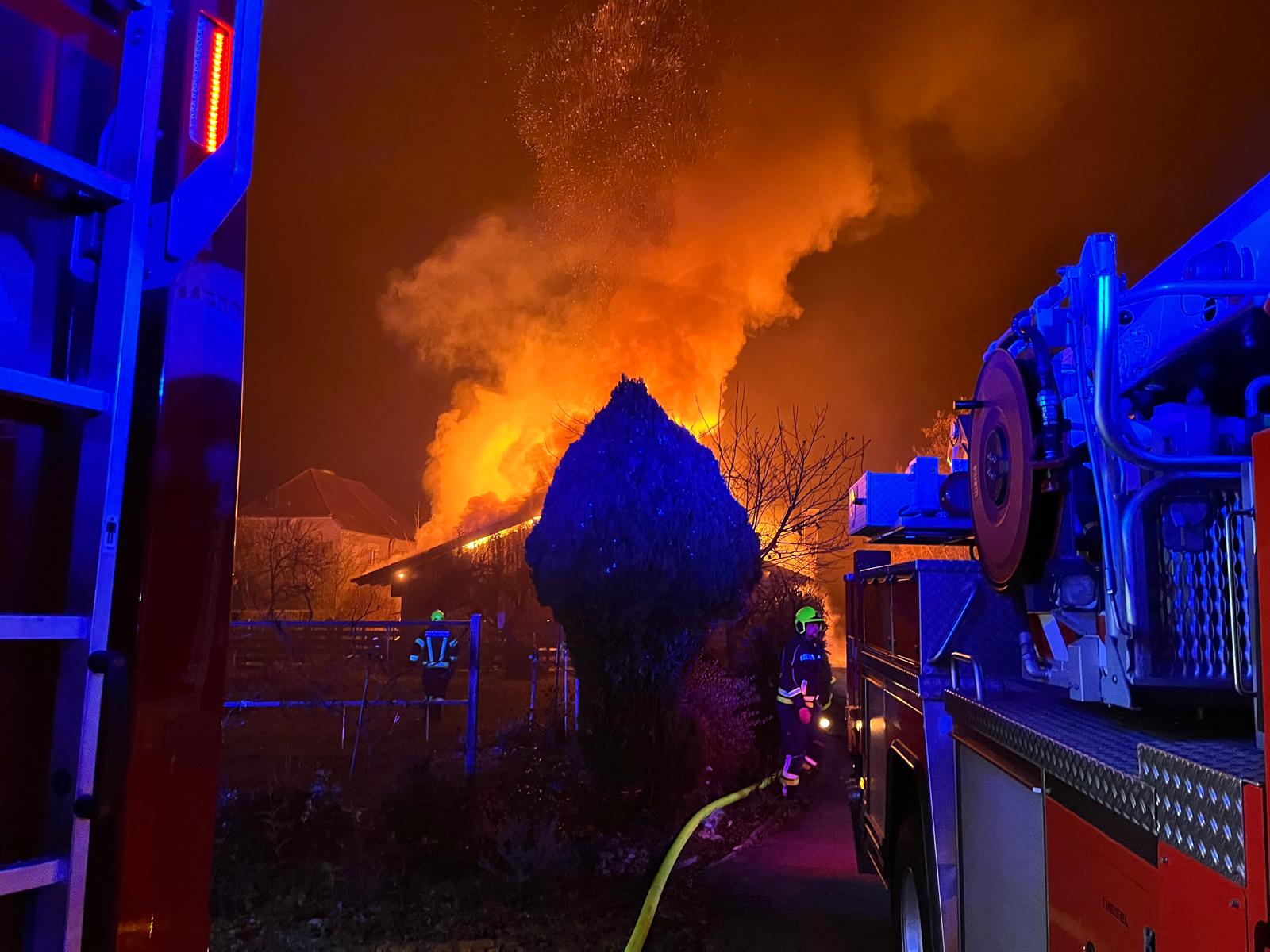 Fünf Amstettner Feuerwehren wurden heute, 12. November, kurz nach 1 Uhr Mitternacht zu einem Brandeinsatz der Kategorie B3 alarmiert: Eine Firmen-Halle stand beim Eintreffen der Feuerwehren im Vollbrand. Mittels Hubsteiger, Cafs-Löschsystem, mehreren Löschleitungen und mehreren Atemschutztrupps konnte der Brand bekämpft werden. Auch ein Drohneneinsatz unterstützte die Löschmaßnahmen. Die Halle ist schwerst beschädigt und teils eingestürzt. Leichter Gasaustritt erschwerte die Löschmaßnahmen. Verletzt wurde niemand. Neben der FF Amstetten waren die Feuerwehren Greinsfurth, Ulmerfeld-Hausmening, Preinsbach und Edla-Boxhofen mit dutzenden Mitgliedern vor Ort. Derzeit (6.30 Uhr) stellt die FF Amstetten noch eine Brandwache.