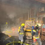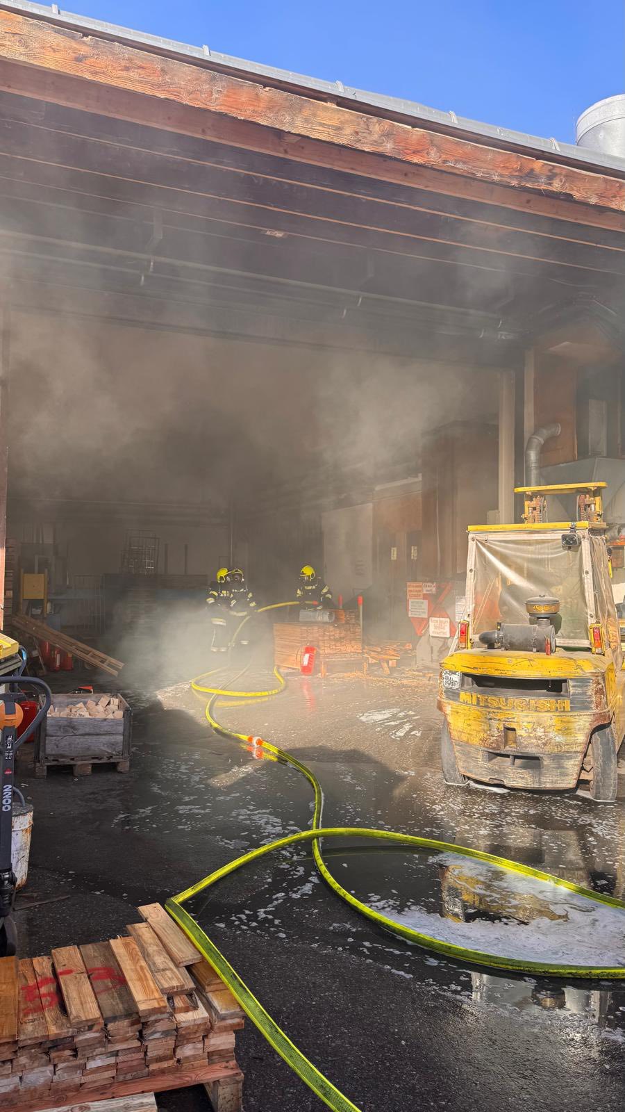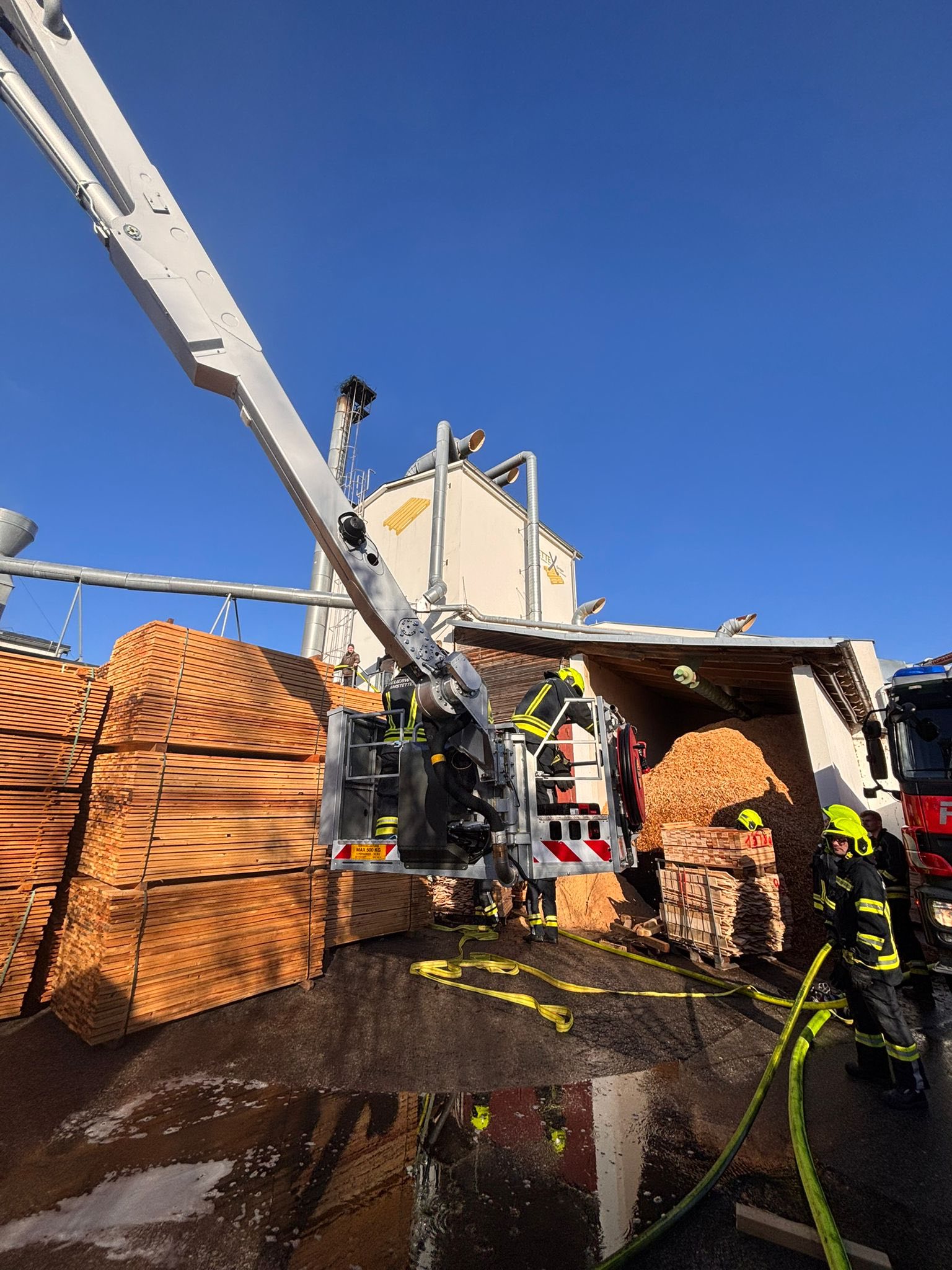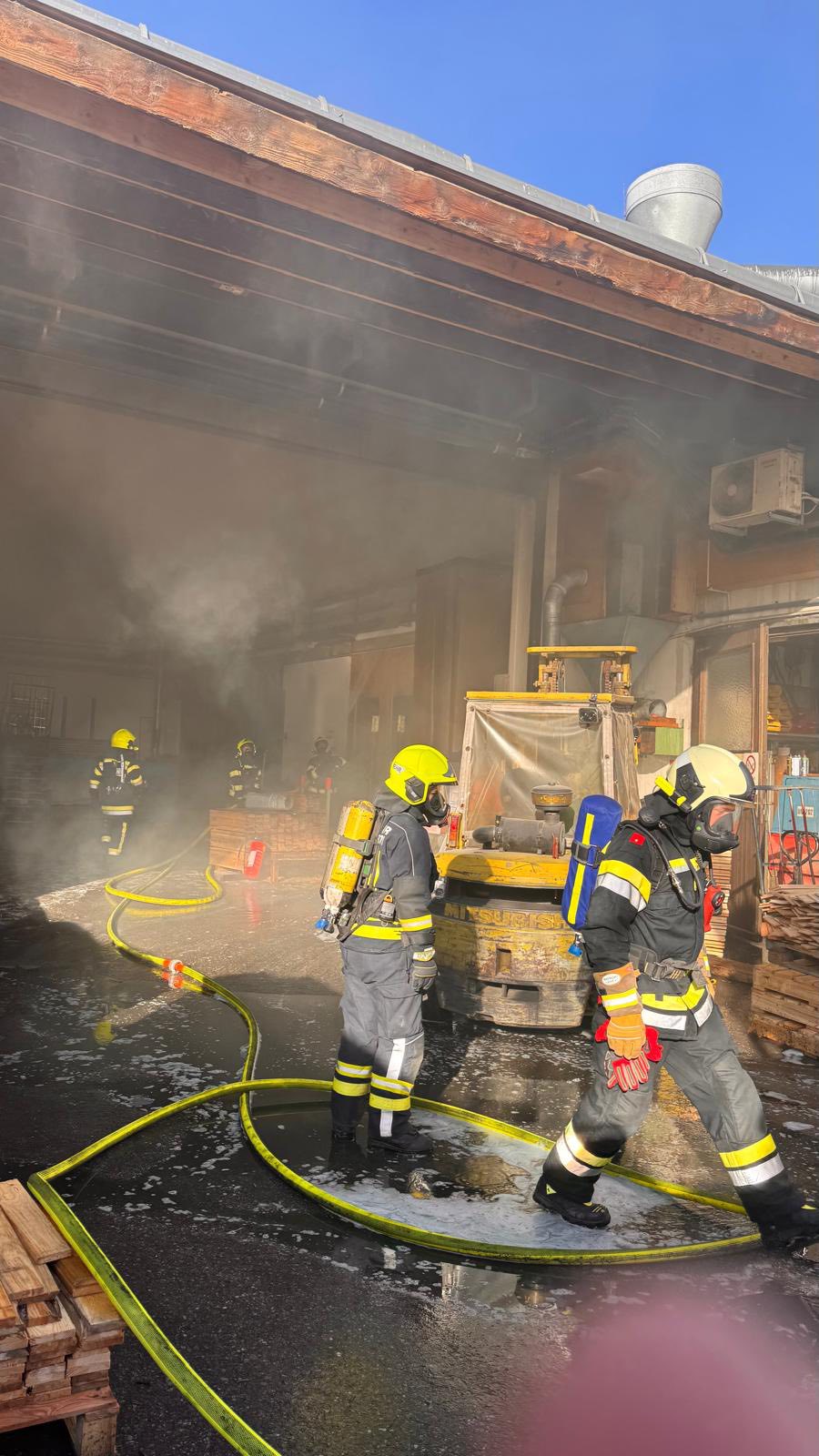 Die weitere Brandbekämpfung erfolgte unter Atemschutz. Zur Bekämpfung und Kühlung der Isolierung zwischen den Blechpaneelen wurde das Dach durch die Feuerwehr Amstetten mit dem Steig geöffnet. Ebenso wurde gleichzeitig eine Löschleitung vom Url-Fluss hergestellt.