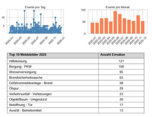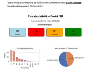 Angemerkt wird, dass im Jahr 2025 in Summe 3.738 Einsatzevents durch die BAZ Amstetten (für die Bezirke Amstetten und Scheibbs) disponiert bzw. alarmiert worden sind.