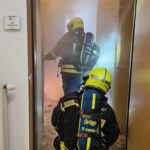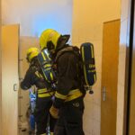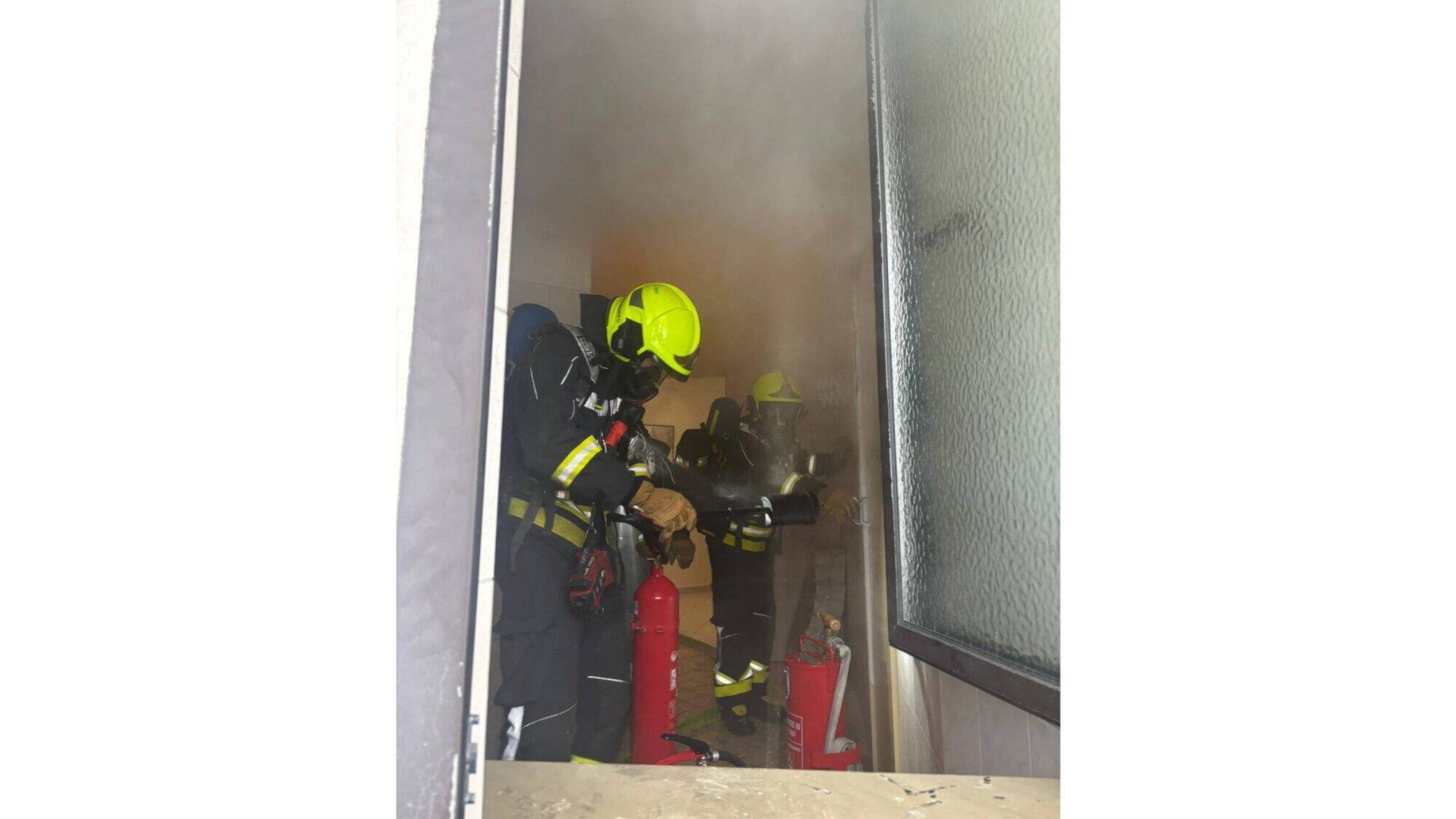 Ein Atemschutztrupp führte umgehend einen Löschangriff durch und konnte den Brand, der in einem Putzschrank in einer Wandnische neben einem WC ausgebrochen war, rasch unter Kontrolle bringen.