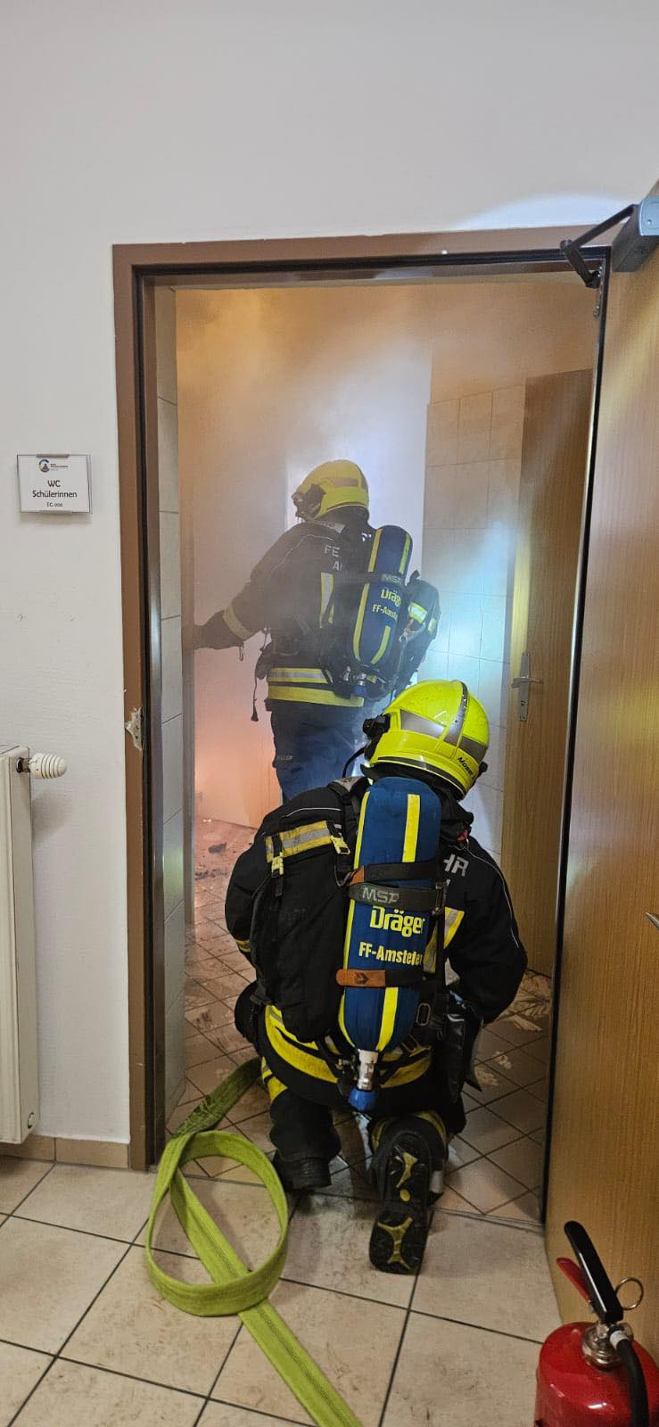 Rauchentwicklung aus dem Bereich einer Toilette machte das Schulpersonal auf das Feuer aufmerksam. Sofort wurde die Freiwillige Feuerwehr Amstetten alarmiert, die mit einem Löschzug (25 Einsatzkräfte) anrückte, um den Brand zu bekämpfen. Die Schülerinnen und Schüler wurden aus Sicherheitsgründen in ein angrenzendes Gebäude gebracht.