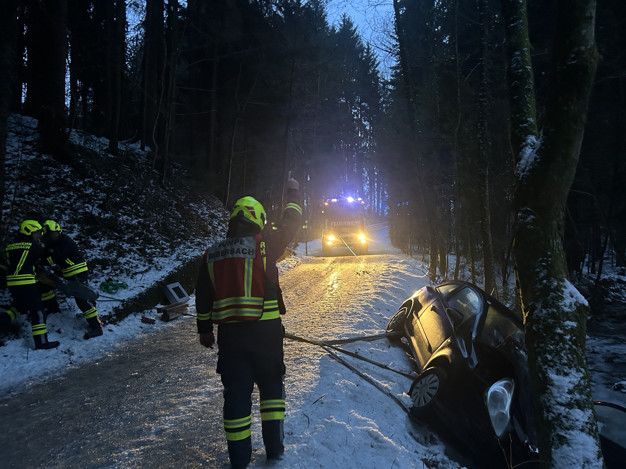 Am 25. Jänner wurde die Freiwillige Feuerwehr Biberbach um 16:36 Uhr zu einer fordernden PKW-Bergung alarmiert. Die Kameraden konnten das Fahrzeug durch die Winde am Einsatzfahrzeug und mittels Greifzug geschickt bergen. Nach rund einer Stunde war der Einsatz für die 14 Feuerwehrmitglieder beendet.