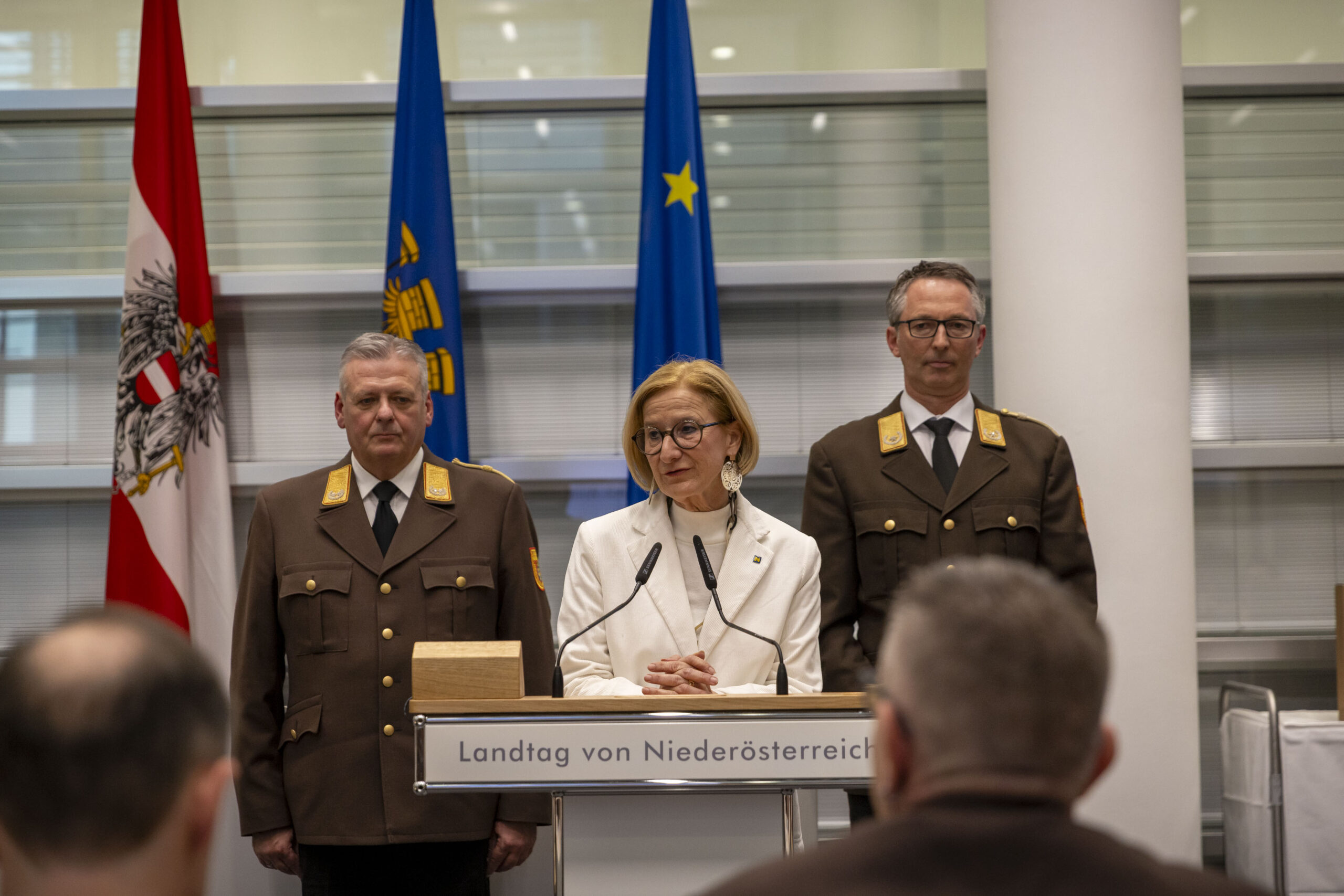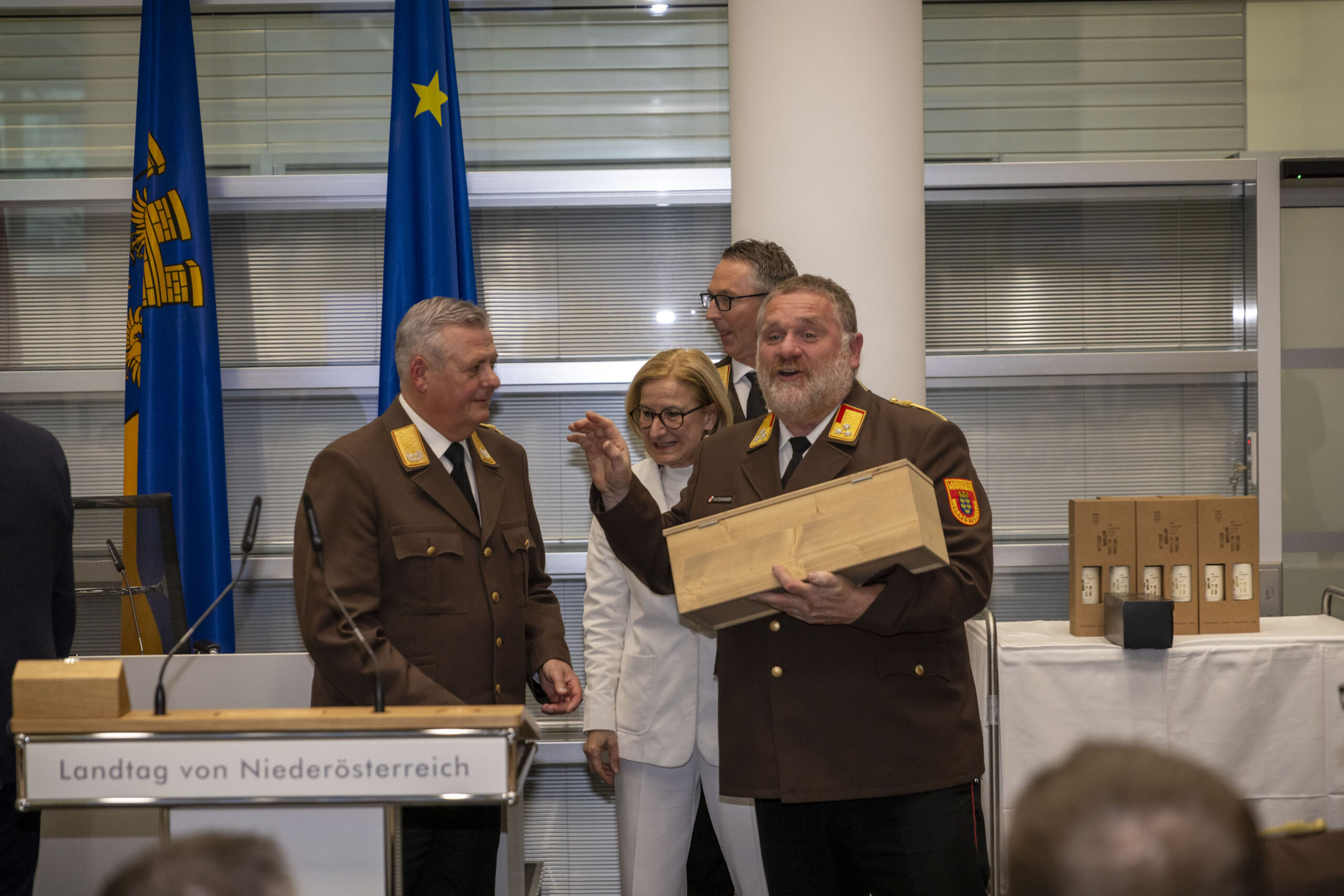 Im Leopoldsaal im NÖ Landhaus in St. Pölten wurde 20. März weiters Dietmar Fahrafellner in seiner Funktion als Landesfeuerwehrkommandant bestätigt, ebenso wie sein Stellvertreter Martin Boyer. Im Zuge der Angelobung des Landesfeuerwehrkommandanten, seines Stellvertreters und der Bezirksfeuerwehrkommandanten gratulierte Landeshauptfrau Johanna Mikl-Leitner Fahrafellner zur Wiederwahl. Die letzten Jahre seien für die Feuerwehren sehr herausfordernd gewesen, so Mikl-Leitner: „Unzählige Brandeinsätze, Unfälle, Waldbrand im Raxgebiet, Jahrhundert-Hochwasser 2024. Gerade in dieser Zeit hat sich deutlich gezeigt: Unsere Feuerwehr ist stark, professionell und zukunftsfit aufgestellt.“ Besonders die Hochwasser-Katastrophe habe das ganze Land gefordert, aber „gezeigt, dass der Zusammenhalt stärker ist als jede Naturkatastrophe.“