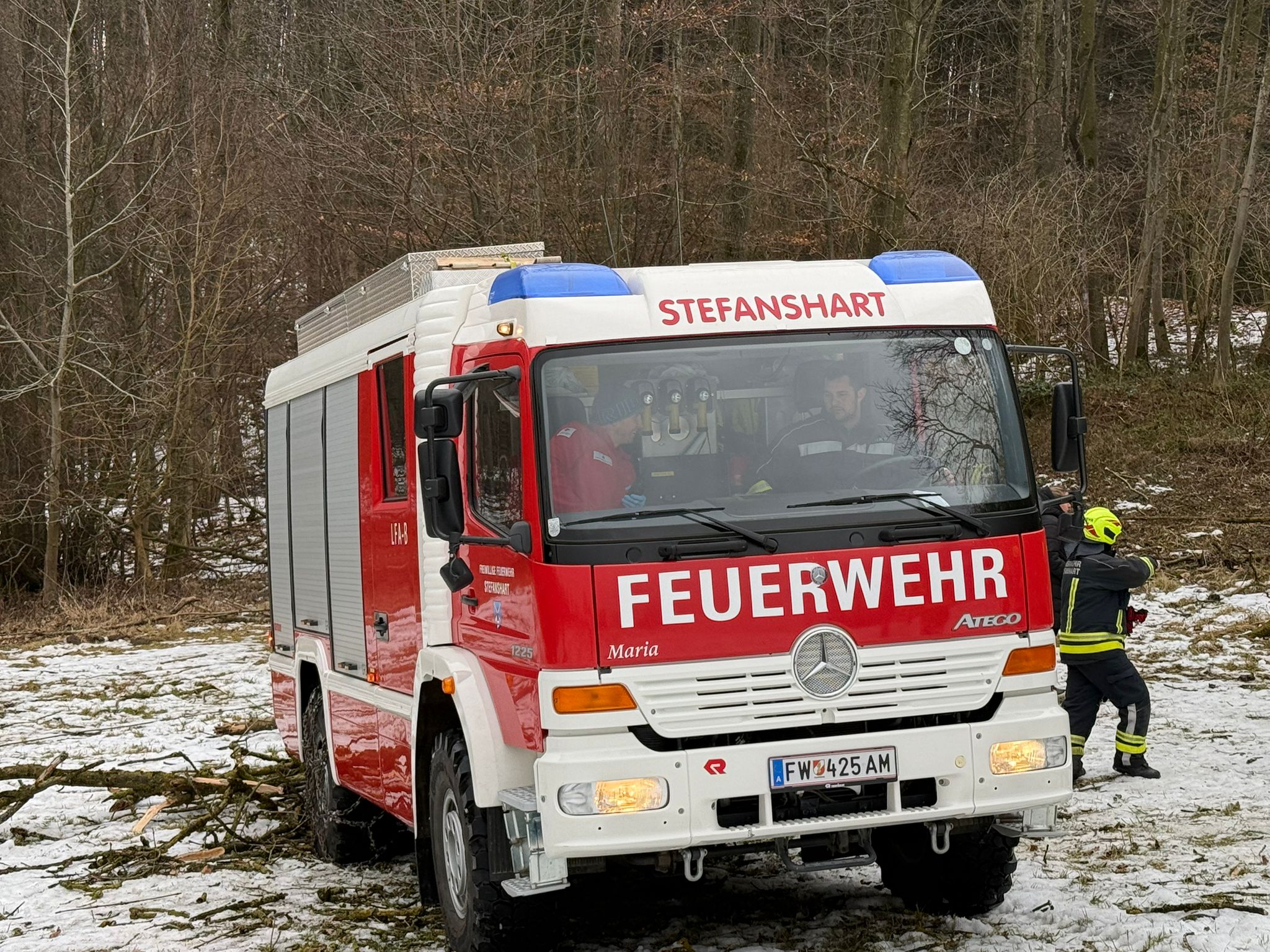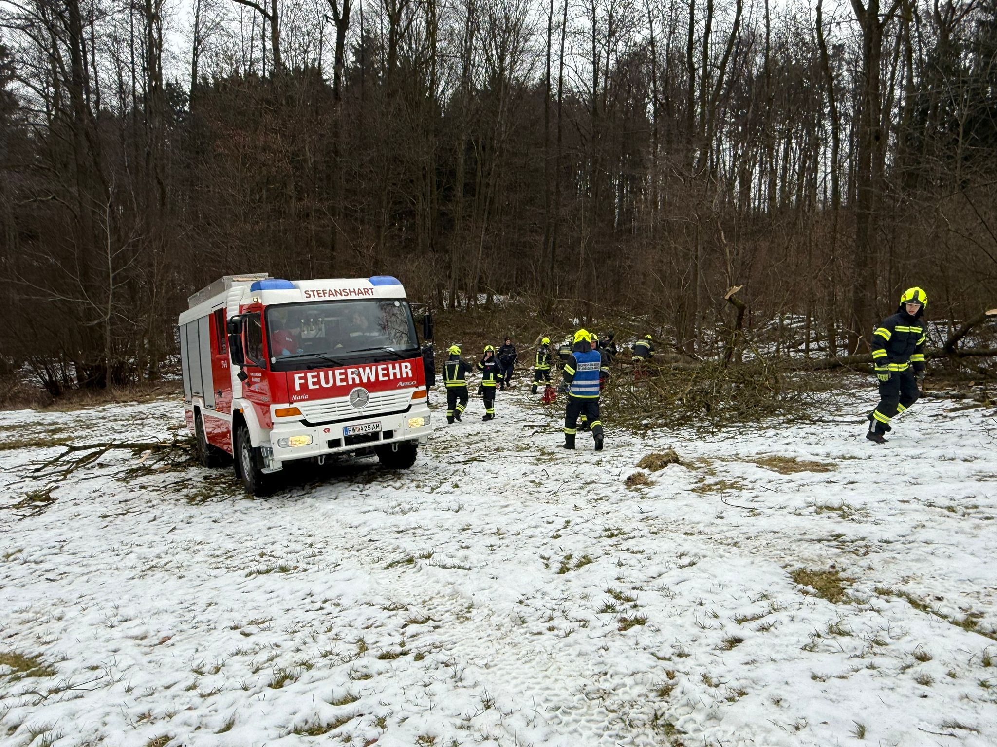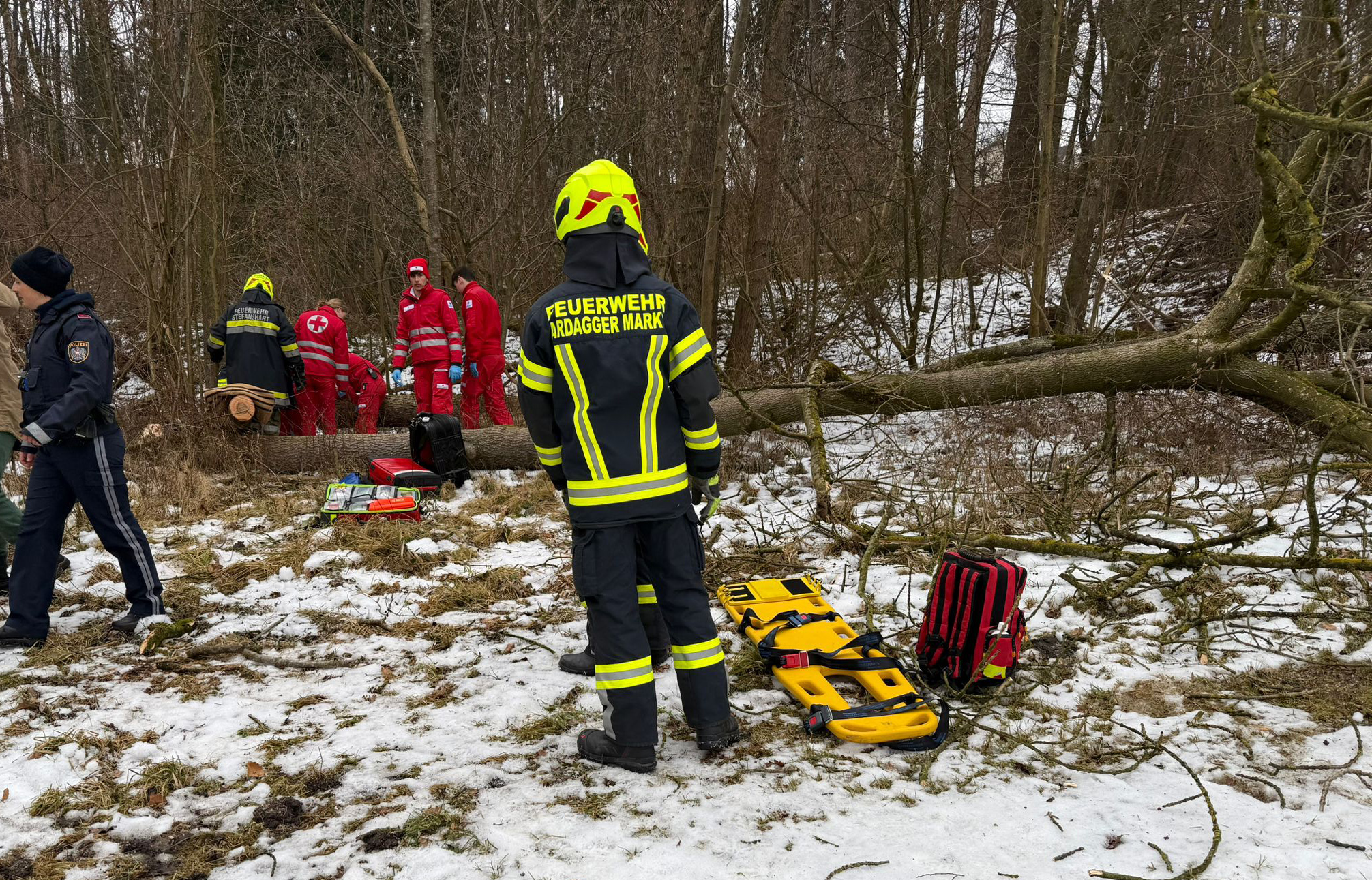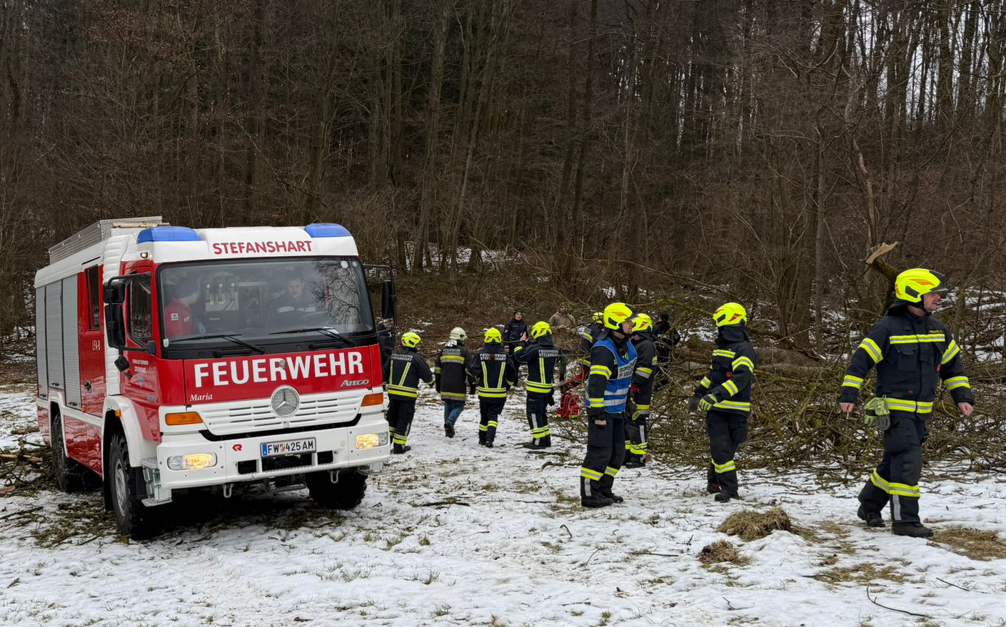 Bei einem Forstunfall am Vormittag des 4. Februar im Einsatzgebiet der FF Stefanshart (Gemeinde Ardagger) wurde eine Person unter einem Baum eingeklemmt. Er konnte aber von einer anderen Person davon befreit werden. Nachdem die Einsatzkräfte alarmiert worden waren, wurde die verletzte Person gesucht, was aufgrund des abwegigen Geländes zunächst schwierig war. Die alarmierten Feuerwehren Stefanshart und Ardagger-Markt transportierten die Rettungskräfte zur Unfallstelle im Waldgebiet. Ein Feuerwehrarzt wirkte dort bei der Erstversorgung mit. Mit einem Feuerwehrfahrzeug wurde der verletzte Gerettete schließlich zu einem Rettungswagen gebracht, das ihn in ein Krankenhaus transportierte. Auch ein Rettungshubschrauber wäre bereitgestanden. Neben den 20 Feuerwehrmitgliedern der FF Stefanshart und FF Ardagger-Markt waren auch das Rote Kreuz und die Polizei im Einsatz.