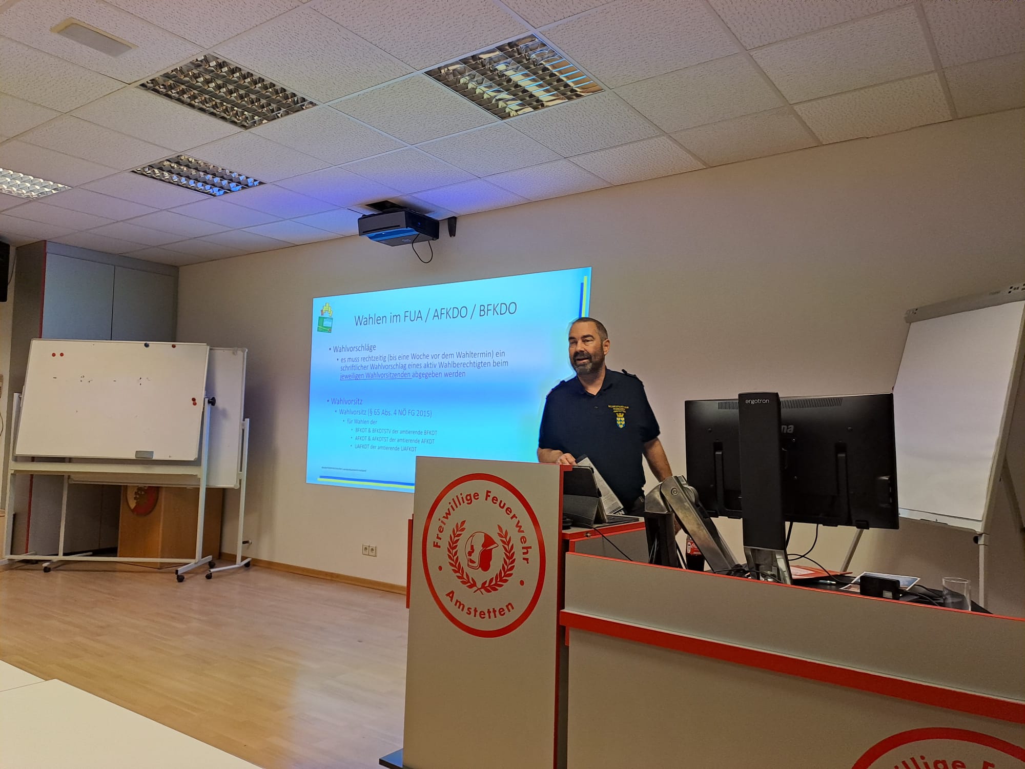 Das Feuerwehrwesen steht vor einem Superwahljahr: Im Jänner werden die Kommandanten der 89 Feuerwehren und deren erste Stellvertreter neu gewählt, im März folgen die Wahlen der sechs Abschnittsfeuerwehrkommandos des Bezirks Amstetten sowie des Bezirksfeuerwehrkommandos. Um für einen perfekten Ablauf zu sorgen, lud das Bezirksfeuerwehrkommando die Leiter der Verwaltungsdienste der 89 Feuerwehren zu Schulungen in die Feuerwehrhäuser Wolfsbach, Amstetten, Ybbsitz und St. Valentin (am 11.11.): Welche Fristen gilt es zu beachten? Wie muss die Wahl ordnungsgemäß ablaufen usw. Florian Kammerhuber, Leiter des Verwaltungsdienstes im Bezirksfeuerwehrkommando, gab hilfreiche Infos, damit im Jänner alles reibungslos klappt.